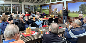 Nach der 12-Loch-Runde wurde bei Kaltgetränken und dem guten Essen aus FranJos Küche gefachsimpelt bevor Isi Rügemer die Siegerehrung vornahm.