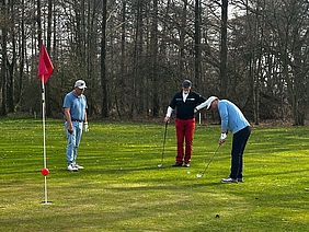 Den Schlusspunkt unter die Winterliga setzte das Texas-Scramble, eine beliebte Spielvariante, bei der vor allem Teamwork zählt. 15 Golferinnen und Golfer machten sich in Dreier-Flights auf die abschließende Runde. Am Ende gab es ein Wimpernschlag-Finale: Drei Teams notierten je 47 Schläge. Den Sieg aber heimsten Dave Specht, Edith und Michael Börger ein: Sie benötigten nur 46 Schläge, um über die zwölf Bahnen zu kommen. Gratulation!