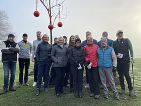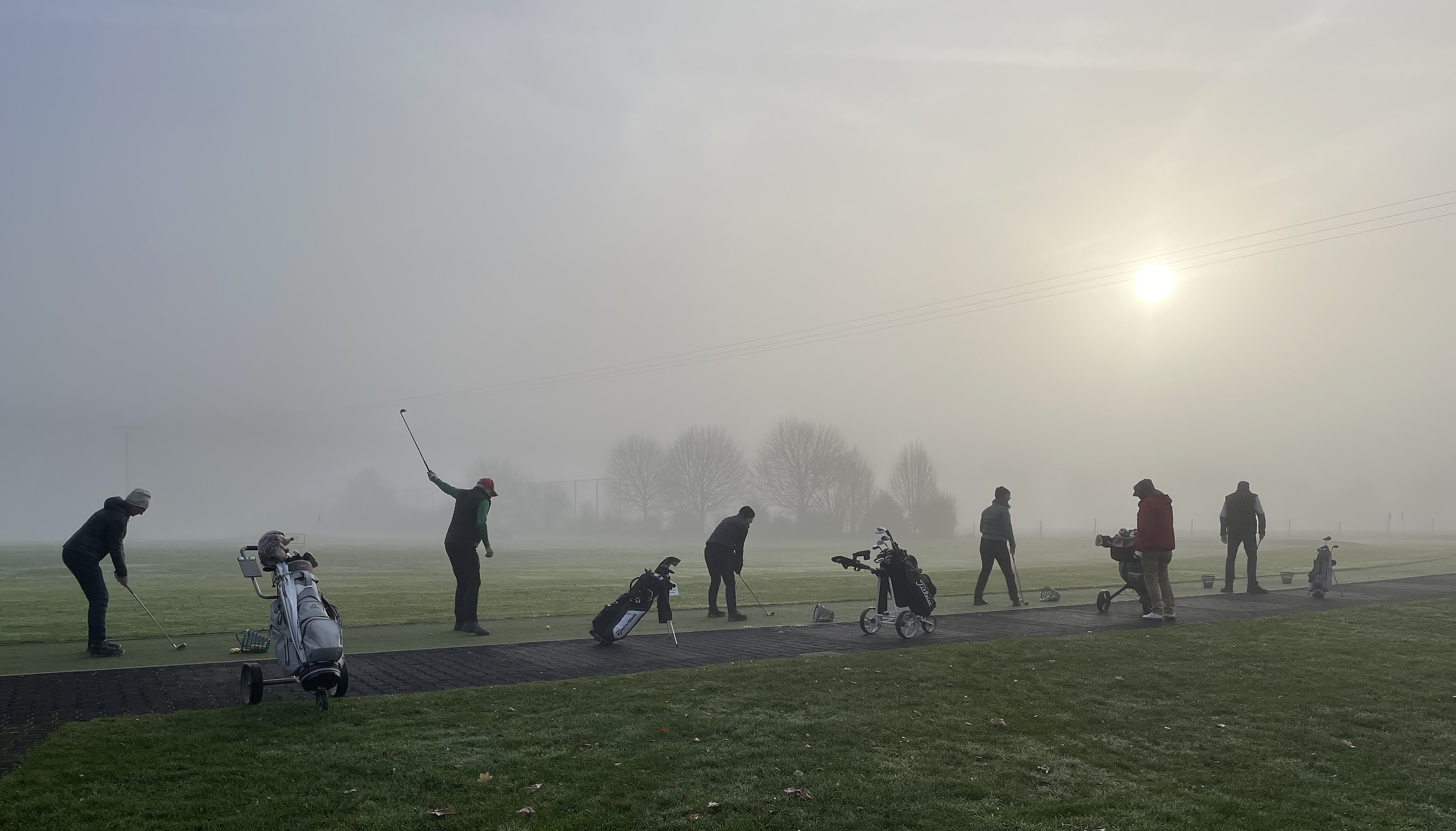 Beim Einspielen verloren die Long-Hitter zunächst ihre Bälle aus den Augen. Dichter Nebel lag über Range und Platz, ehe sich die Sonne durchkämpfte und allen einen tollen Golf-Tag bescherte. Ein leicht gefrorener Boden machte die Bälle diesmal schnell – so manch einer schoss übers Ziel hinaus.