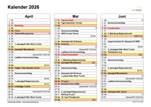 (Stand 26.02.26; Änderungen vorbehalten - für aktuelle Informationen, s. PC CADDIE)